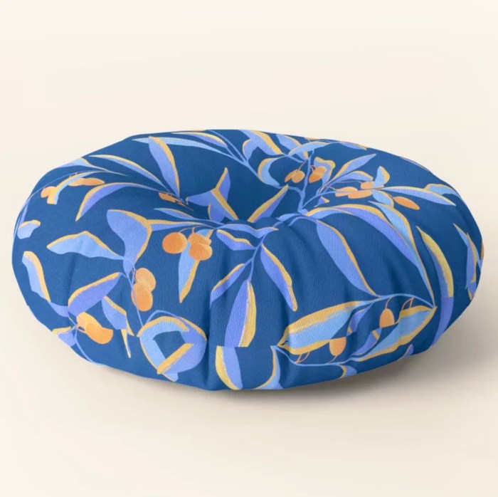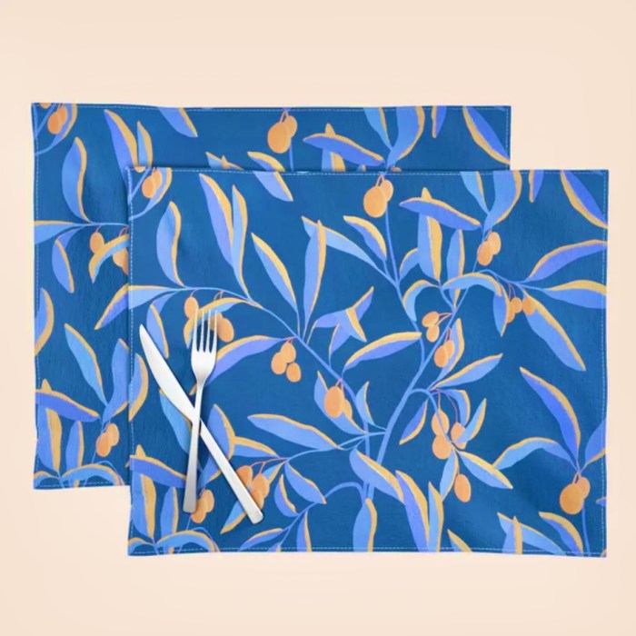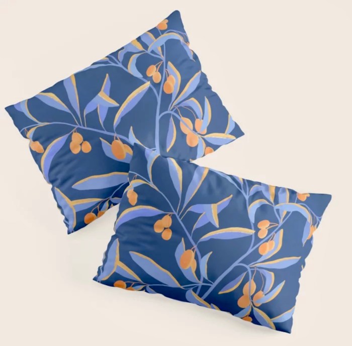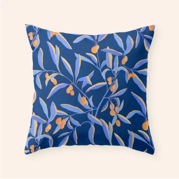 Description: Vivid blue leaves with golden orange fruits in an abstract composition, set against a flat deep blue background. This is an original artwork by Kristian Gallagher. It’s available as home decor, art prints, and other wall art.